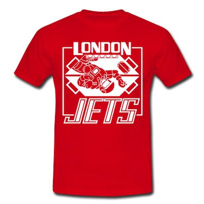 This shirt is a replica of the red London Jets t-shirt worn by the character Dave Lister in the first two series of Red Dwarf.